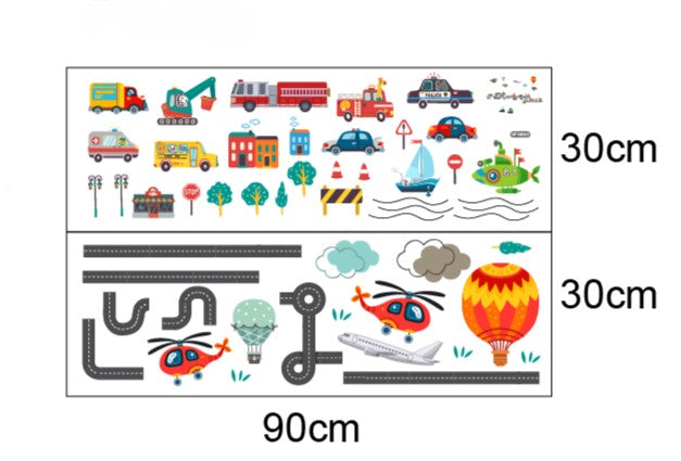Tämä lastenhuoneen seinätarra sopii erityisen hyvin pienille autojen, koneiden ja kulkuneuvojen ystäville. Tarrat voi asetella juuri haluamaansa järjestykseen, mikä tekee siitä sekä hauskan että luovan sisustusprojektin.