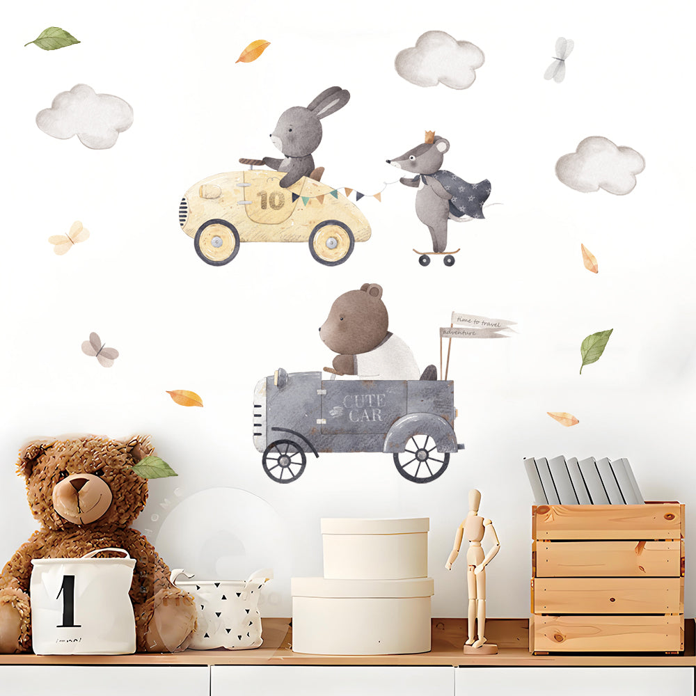 - Söpöt eläinhahmot autoissa – karhu, pupu ja mäyrä huristelevat omilla ajoneuvoillaan