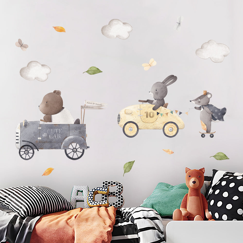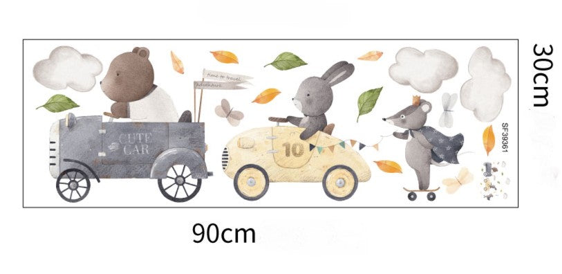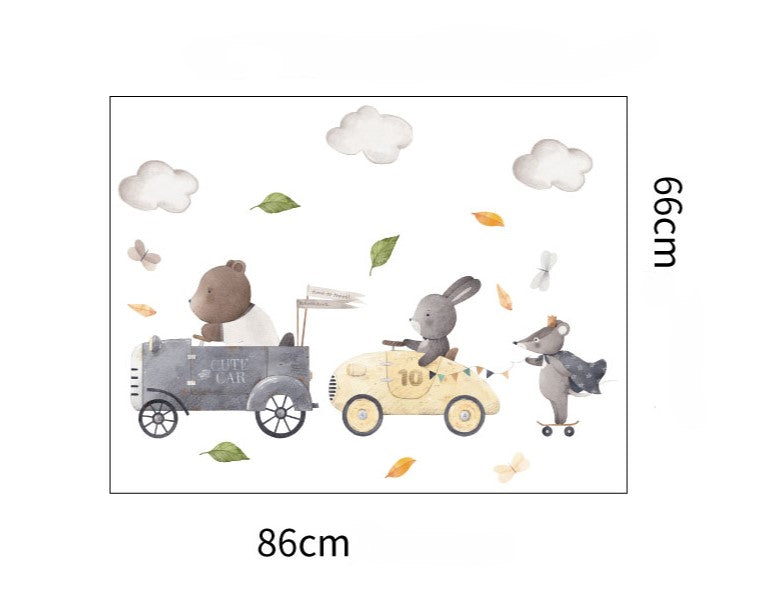 Eläimet ajelulla -seinätarra (86 × 66 cm)